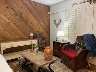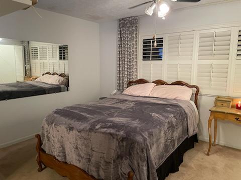 Master bedroom with custom wooden shutters and den: